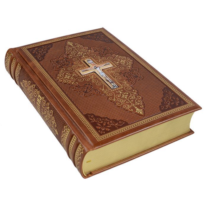 Библия отличное подарочное издание, отпечатанное на специальной бумаге, которая обеспечивает долговечность. Страницы книги не будут со временем желтеть из-за воздействия температуры и света. Библия прослужит не одному поколению. Количество страниц: 1338. Форзац из дизайнерской бумаги. 4 бинта на корешке, ручной обработки. Каптал золотой из натуральной кожи. Обрез блока торшонированный золотой. Тиснение блинтовое и золотой фольгой. Ляссе. Обложка каждой книги изготавливается вручную, поэтому может отличаться от представленной на фото. Производитель оставляет за собой право изменить цветовую гамму и размеры изделия. Товар упаковывается в полиэтиленовую пленку. На нашем сайте вы можете заказать: Библия в обложке из натуральной кожи со вставкой из финифти, ручная работа.